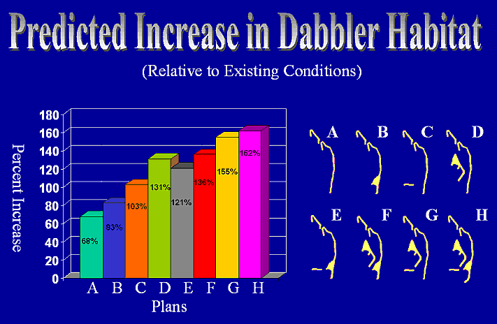 These models were used to aid communication between USFWS management and USACE engineers and planners. The models helped both partners envision the issues being discussed with graphical and quantitative spatial support. They also illustrated UMESC's ability to quickly respond and produce to a model according to the users' need.