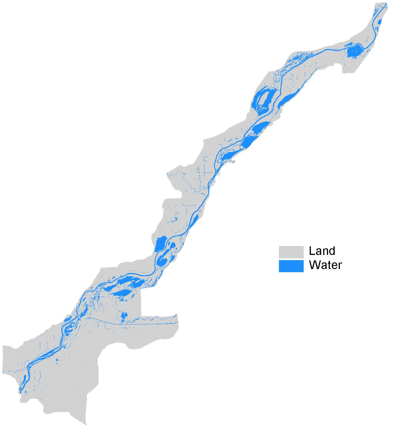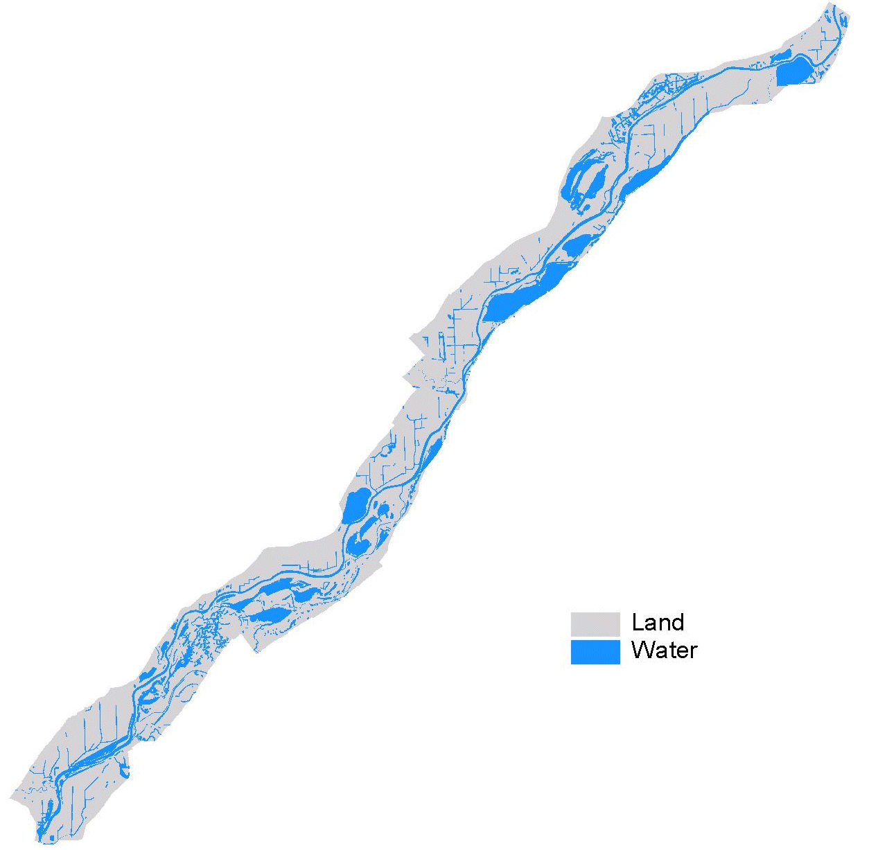 Land/water is one of the classification attributes in the land cover/use data sets created by UMESC from aerial photography. These data are redistributed here as shape files with the boundaries of the region's 1:24,000-scale USGS quadrangles added to the data. This has been done because individuals working with ArcView have reported numerous problems if they attempt to perform a dissolve on the land cover/use data to create a land/water only shape file. Most printers cannot process the detailed land/water boundaries unless some form of a break line or lines are added.