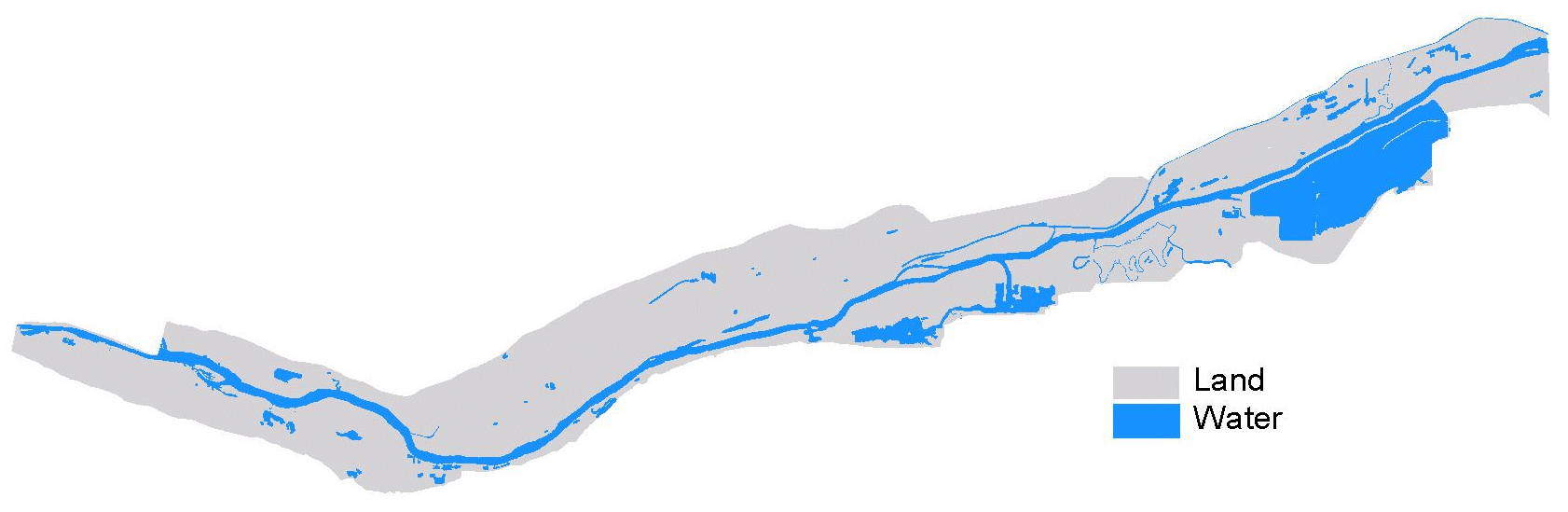 Land/water is one of the classification attributes in the land cover/use data sets created by UMESC from aerial photography. These data are redistributed here as shape files with the boundaries of the region's 1:24,000-scale USGS quadrangles added to the data. This has been done because individuals working with ArcView have reported numerous problems if they attempt to perform a dissolve on the land cover/use data to create a land/water only shape file. Most printers cannot process the detailed land/water boundaries unless some form of a break line or lines are added.
