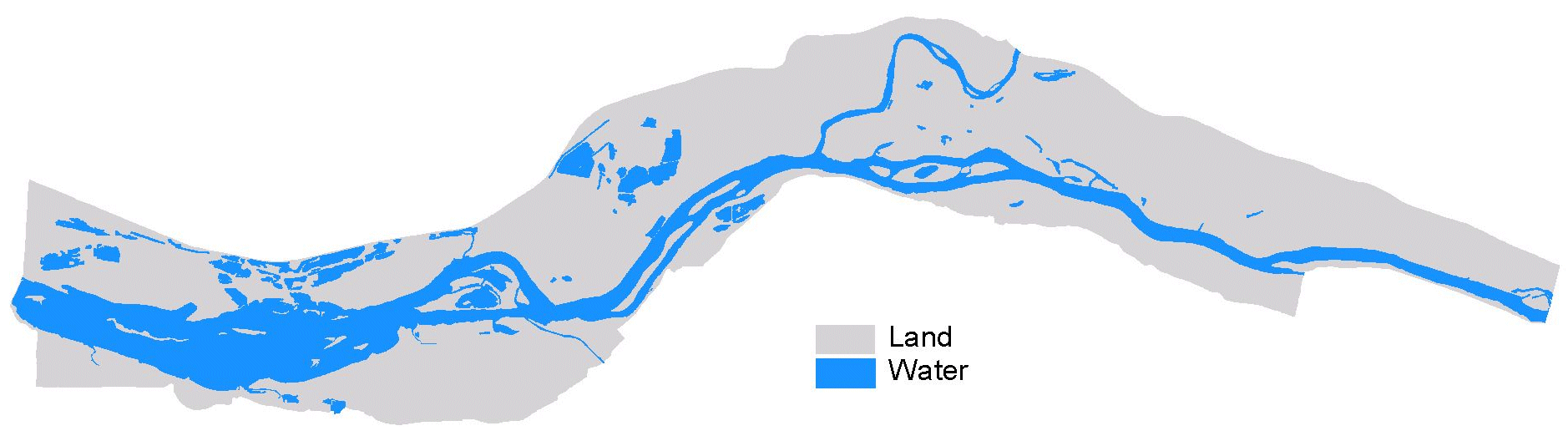 Land/water is one of the classification attributes in the land cover/use data sets created by UMESC from aerial photography. These data are redistributed here as shape files with the boundaries of the region's 1:24,000-scale USGS quadrangles added to the data. This has been done because individuals working with ArcView have reported numerous problems if they attempt to perform a dissolve on the land cover/use data to create a land/water only shape file. Most printers cannot process the detailed land/water boundaries unless some form of a break line or lines are added.
