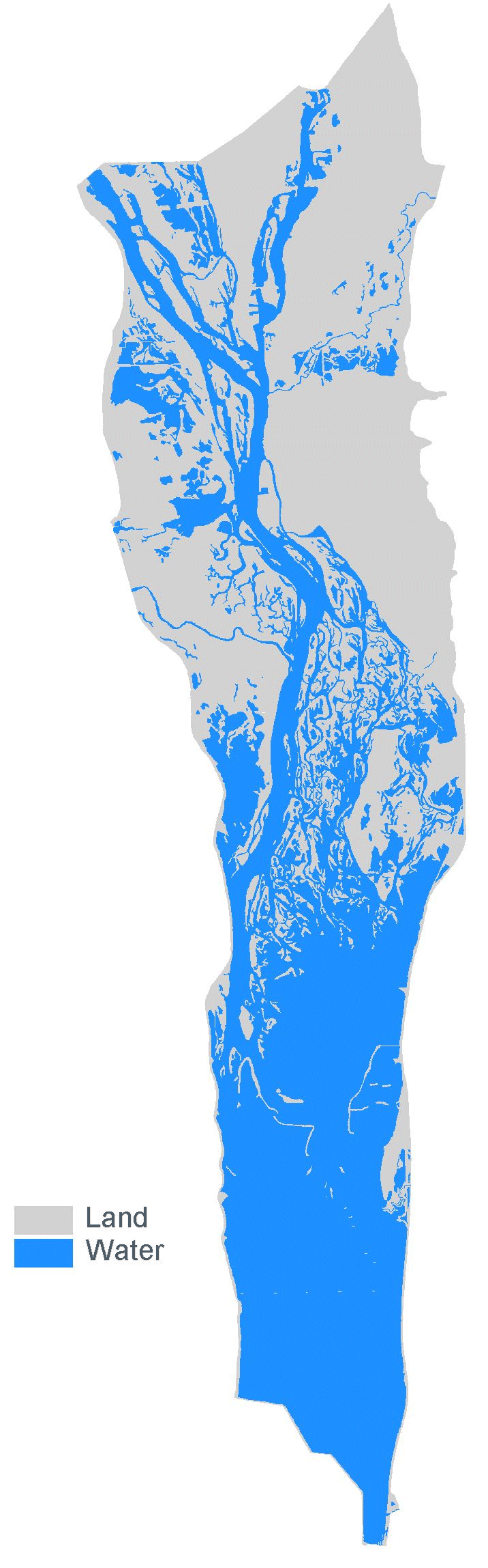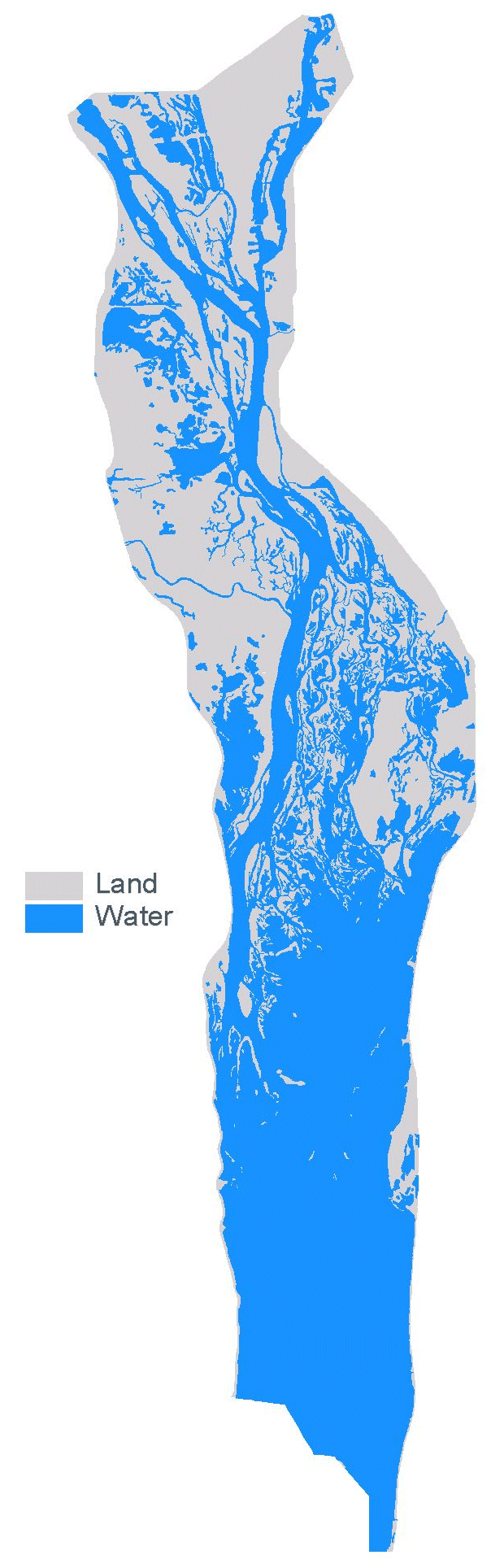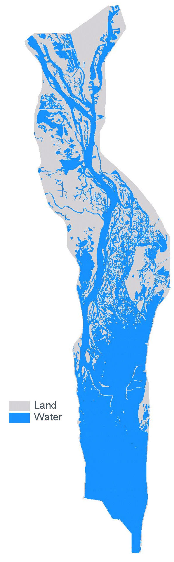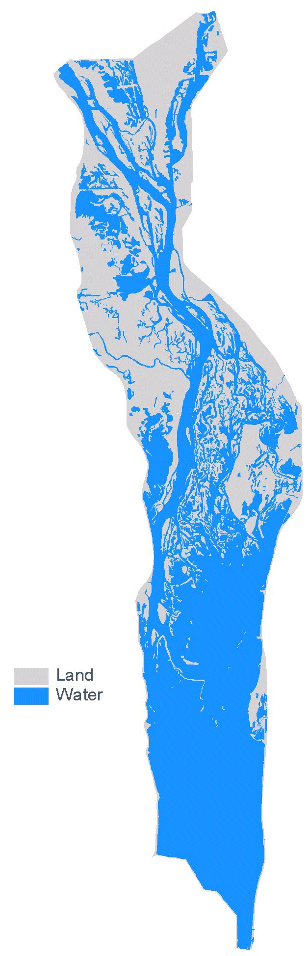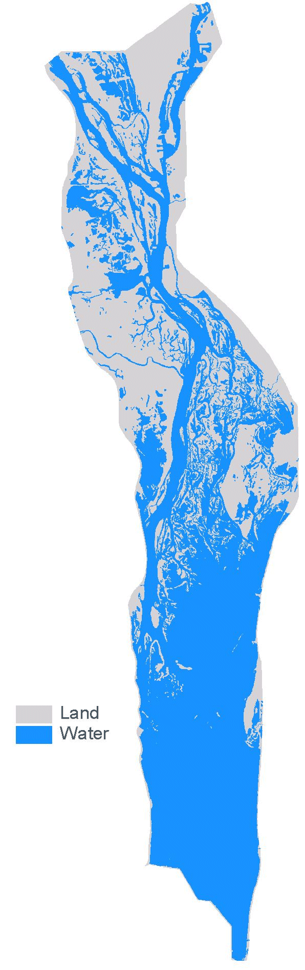 Land/water is one of the classification attributes in the land cover/use data sets created by UMESC from aerial photography. These data are redistributed here as shape files with the boundaries of the region's 1:24,000-scale USGS quadrangles added to the data. This has been done because individuals working with ArcView have reported numerous problems if they attempt to perform a dissolve on the land cover/use data to create a land/water only shape file. Most printers cannot process the detailed land/water boundaries unless some form of a break line or lines are added.