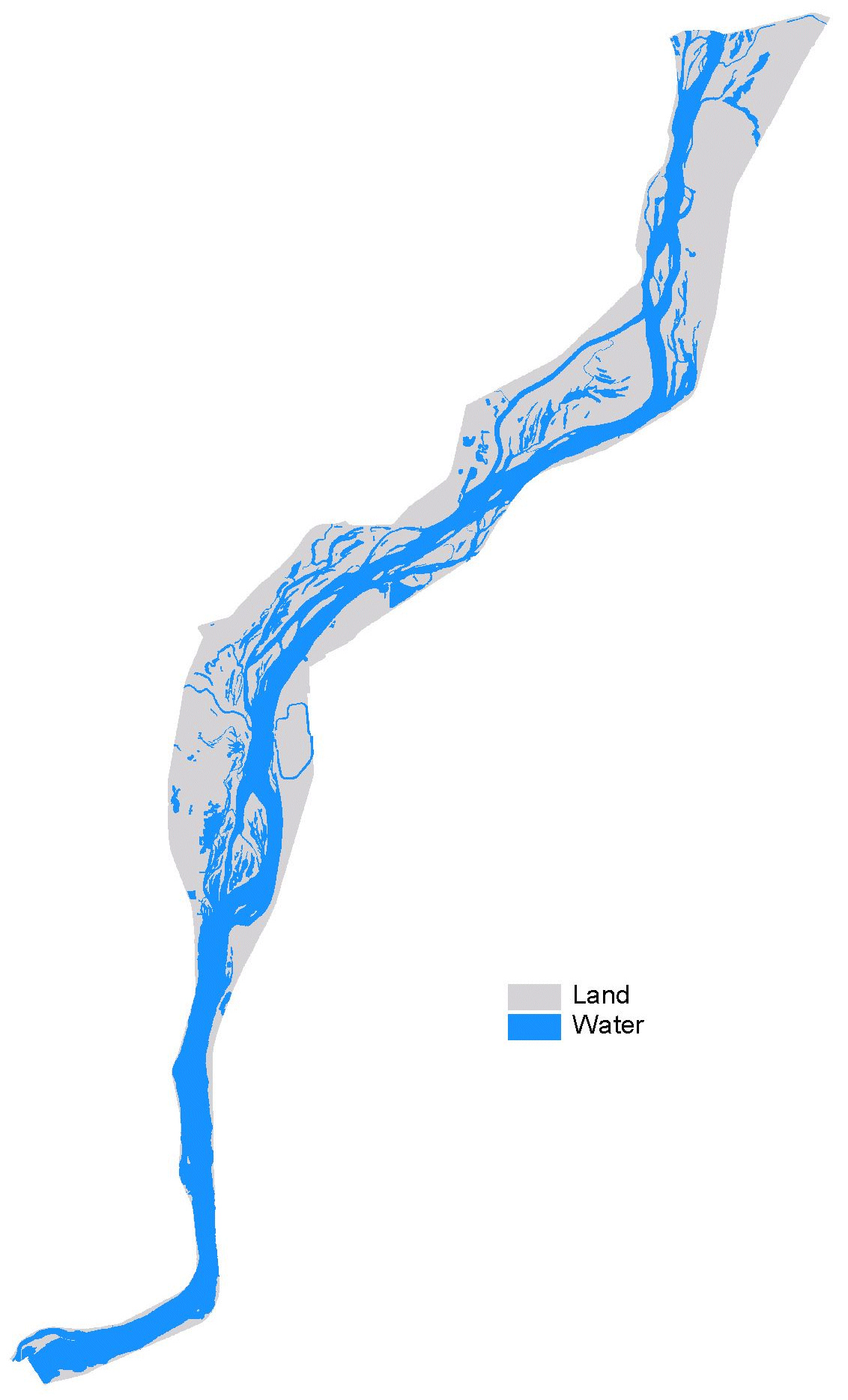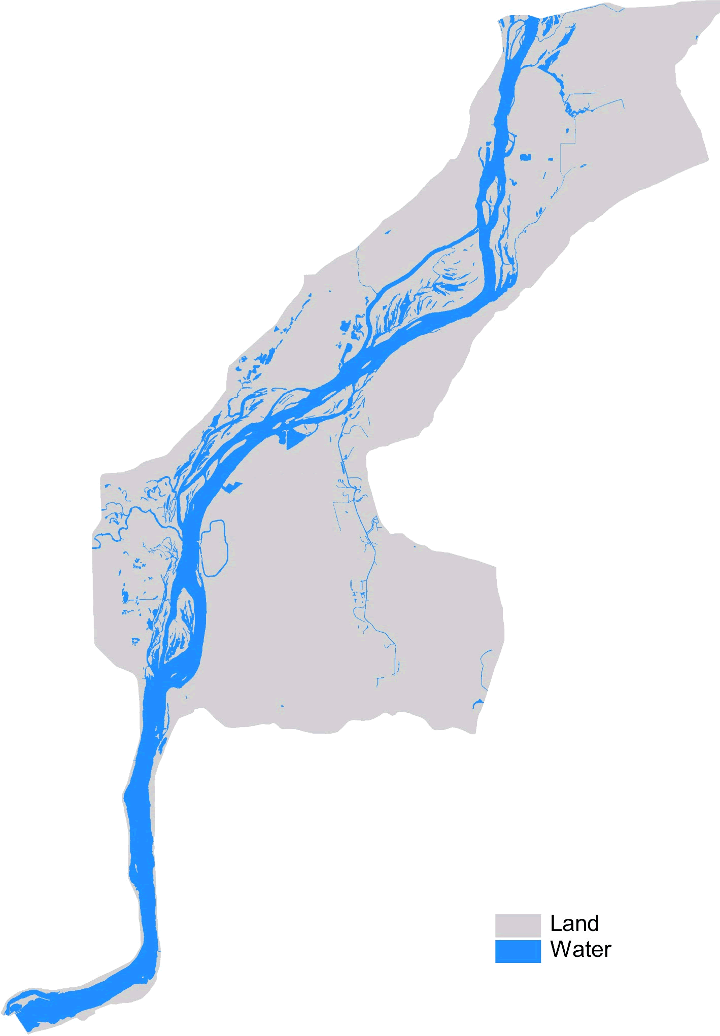 Land/water is one of the classification attributes in the land cover/use data sets created by UMESC from aerial photography. These data are redistributed here as shape files with the boundaries of the region's 1:24,000-scale USGS quadrangles added to the data. This has been done because individuals working with ArcView have reported numerous problems if they attempt to perform a dissolve on the land cover/use data to create a land/water only shape file. Most printers cannot process the detailed land/water boundaries unless some form of a break line or lines are added.