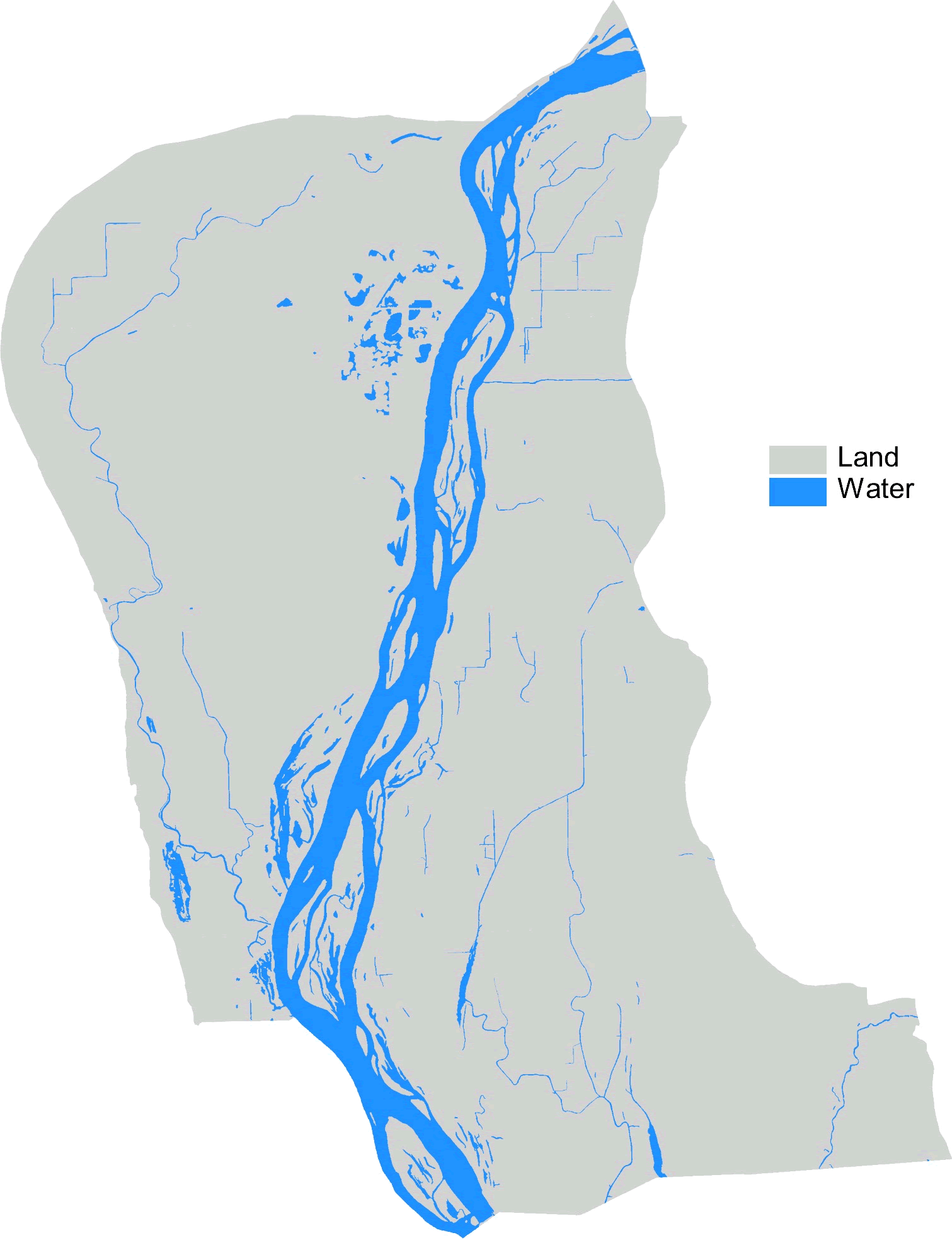 Land/water is one of the classification attributes in the land cover/use data sets created by UMESC from aerial photography. These data are redistributed here as shape files with the boundaries of the region's 1:24,000-scale USGS quadrangles added to the data. This has been done because individuals working with ArcView have reported numerous problems if they attempt to perform a dissolve on the land cover/use data to create a land/water only shape file. Most printers cannot process the detailed land/water boundaries unless some form of a break line or lines are added.