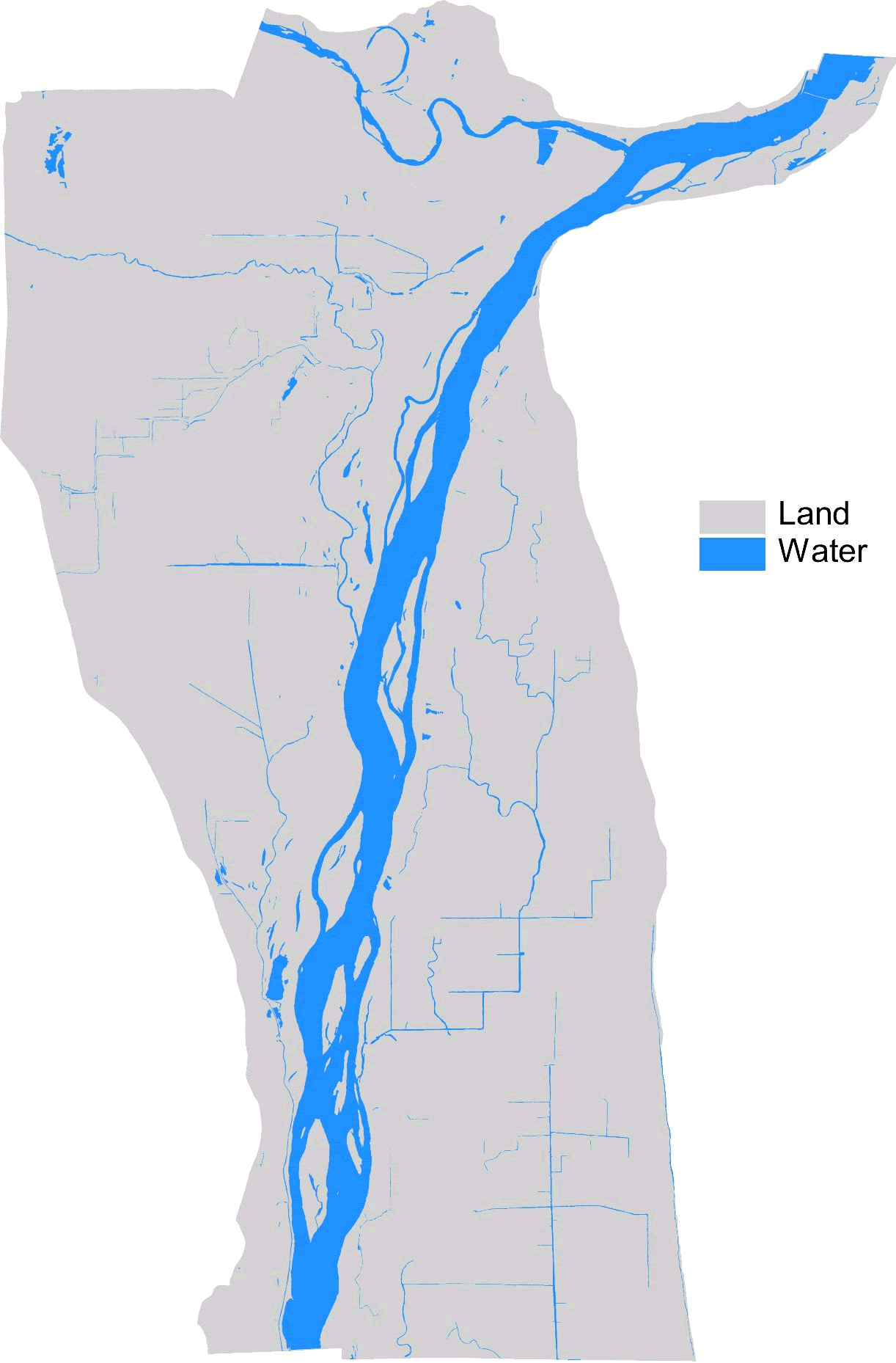Land/water is one of the classification attributes in the land cover/use data sets created by UMESC from aerial photography. These data are redistributed here as shape files with the boundaries of the region's 1:24,000-scale USGS quadrangles added to the data. This has been done because individuals working with ArcView have reported numerous problems if they attempt to perform a dissolve on the land cover/use data to create a land/water only shape file. Most printers cannot process the detailed land/water boundaries unless some form of a break line or lines are added.