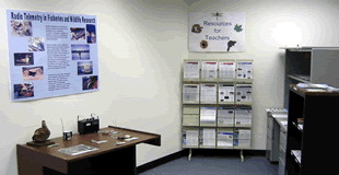 Visitors can use computers to learn about highlighted Center research studies and find information on any bird found in North America. These displays are very educational for teachers, students and any member of the public. For information about tours contact Randy Hines, at (608) 781-6398. |